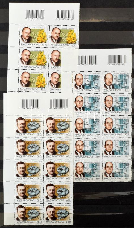 Modern magyar vonalkódos tízes tömbök, közte a visszavont Soó Rezső bélyeg, emlékívek, bélyegnapi ívek, jugoszláv CEPT gyűjtemény stb. Érdekes tartalmas vegyes anyag