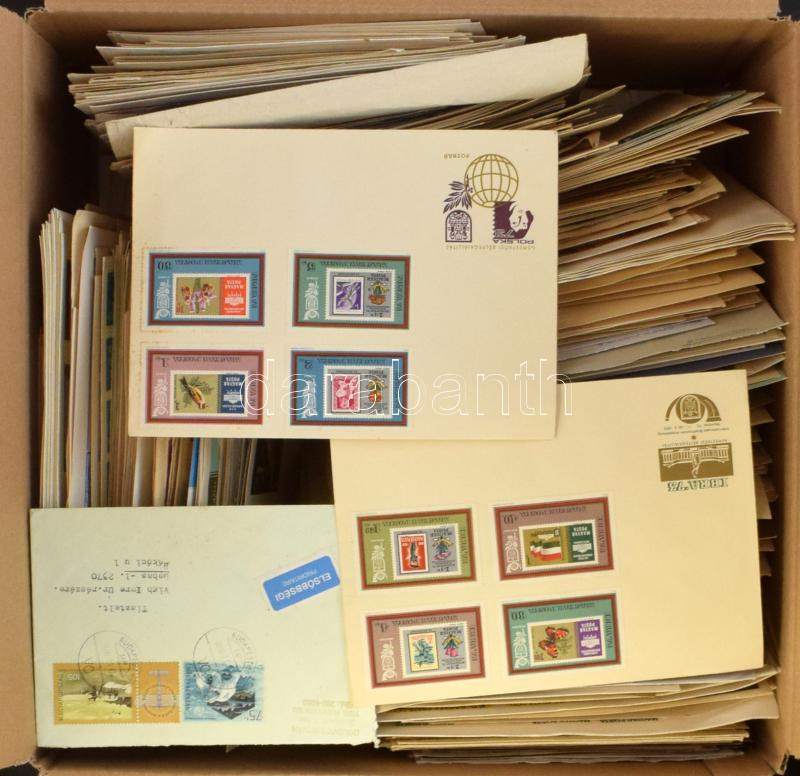 Leírás: Közel 1.000 db levél, levelezőlap, képeslap, FDC, alkalmi küldemény, bélyegzés nélküli FDC stb, érdekes, nagy anyag!!!