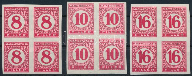 Leírás: 1929 Pengő-filléres portó II. 3 értékes vágott sor vékony papíron négyestömbökben (60.000)
