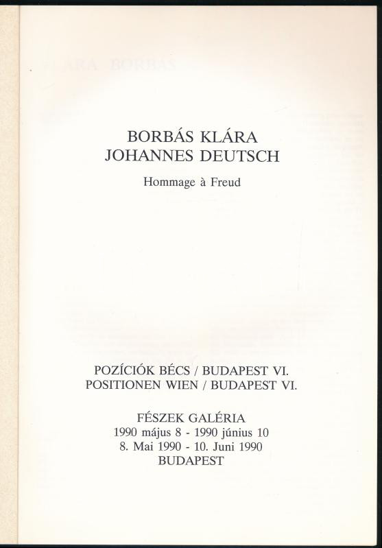 Borbás - Deutsch (Pozíciók VI Bécs.) Bp., 1990. Fészek Galéria, . Kiál... https://www.darabanth.com/hu/496-Gyorsarveres/496.0/Konyvek/Konyvek-Epiteszet-muveszet~2000107/Borbas-Deutsch-Poziciok-VI-Becs-Bp-1990-Feszek-Galeria-Kiallitasi-katalogus-Kia~II3072347