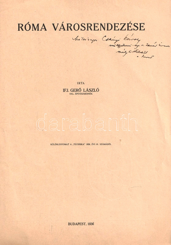 Dedikált: "Méltóságos Csányi Károly műegyetemi ny. r. tanár úrnak mély tisztelettel a szerző".