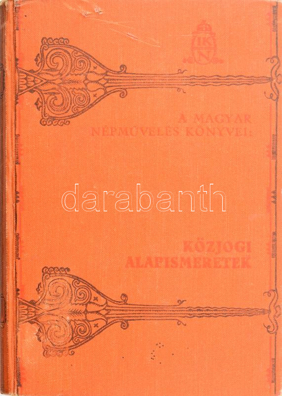 Dr. Egyed István: Közjogi alapismeretek. A magyar népművelés könyvei. Bp.,1927, Fejér Vármegye Közönsége, (Kir. M. Egyetemi Nyomda-ny.), XIII+239+1 p.+14 t.(Fekete-fehér fotók.Benne Horthy Miklós arcképével.) Első kiadás. Kiadói egészvászon-kötés, minimálisan foltos lapokkal