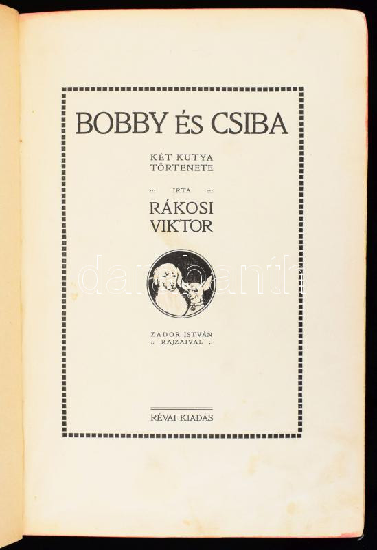 Rákosi Viktor: Bobby és Csiba. Két kutya története. Zádor István rajza... https://www.darabanth.com/hu/496-Gyorsarveres/496.0/Konyvek/Konyvek-Mesekonyvek-ifjusagi-irodalom~2000119/Rakosi-Viktor-Bobby-es-Csiba-Ket-kutya-tortenete-Zador-Istvan-rajzaival-Bp-Revai-Jav~II3393175