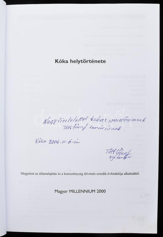 Kóka helytörténete. Szerk.: Krámer Iván. Kóka, 2000., Kóka Község Önkormányzata. Gazdag képanyaggal illusztrált. Az egyik fotós, Tóth István által DEDIKÁLT példány. Kiadói papírkötés.