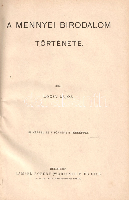 Lóczy Lajos: A Mennyei Birodalom története. 58 képpel és 7 történeti térképpel.