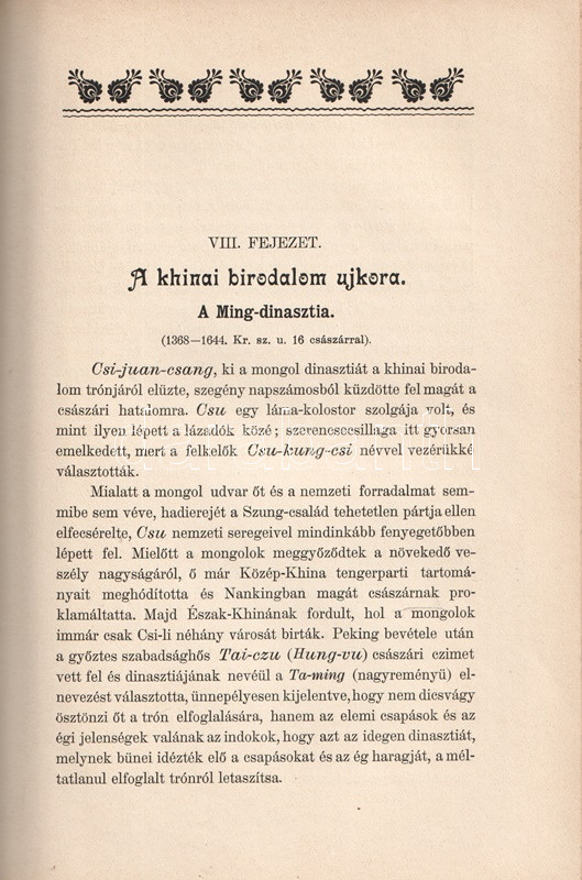 Lóczy Lajos (1849-1920) geológus és geográfus többedmagával részt vett Széchenyi Béla nevezetes, 1877-1880 közötti kelet-ázsiai felfedezőútján. Az expedÃció eredményeit a szaktudósok hosszú évekig dolgozták fel, e publikációk tették világhÃrűvé a szerzÅ‘t. Az expedÃció után két évtizeddel közzétette a kelet-ázsiai témához szorosan kapcsolódó kÃnai történeti összefoglalóját is, ez volt egyben az általa alapÃtott és szerkesztett, A Magyar Földrajzi Társaság könyvtára cÃmű földrajzi ismeretterjesztÅ‘ sorozat elsÅ‘ önálló magyar műve.