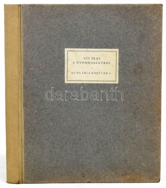 Tíz írás a nyomdászatról. Előszó Bárczy István. Írták: Fitz József, Szentkúty Pál, Kozma Lajos, Durand Félix, Ferdinandy Gejza, Bródy László, Haiman-Kner György, Boér Pál, Magyary István és Kner Imre. Bp., 1942, Hungária ny. 217 p. Szövegközti képekkel gazdagon illusztrálva. /Hungária Könyvek 9./ Kiadói félvászon kötésben, ex librisszel. Kiadói kartonált félvászonkötésben, szép állapotban