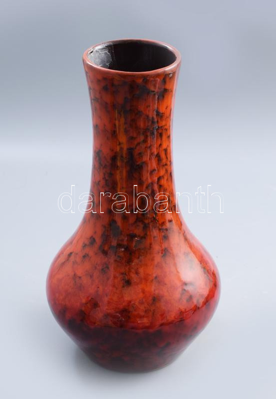 Leírás: Retro mázas kerámia váza, száján apró mázhibával 32 cm