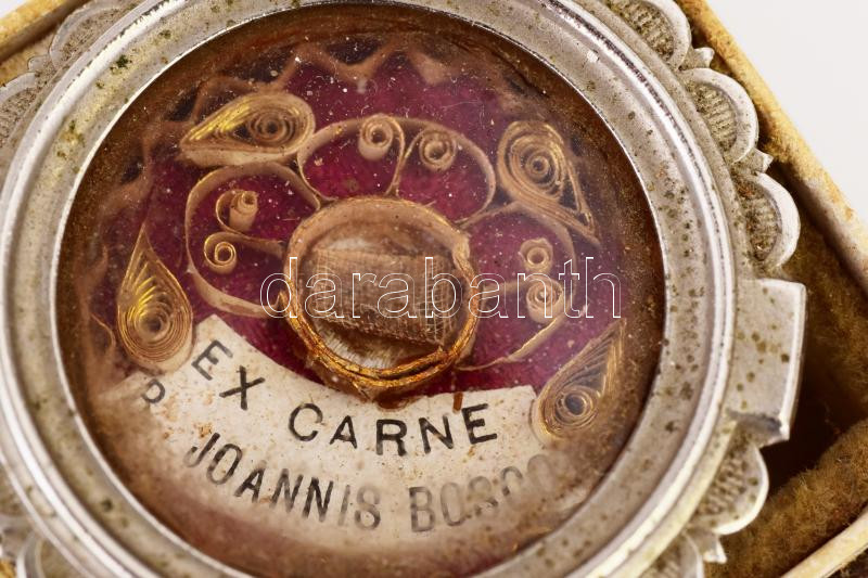 cca 1930 B. Joannis Bosco ereklye, ruhadarab fém tokban, d: 3,5 cm https://www.darabanth.com/hu/496-Gyorsarveres/496.0/Kulfoldi-filatelia-es-postatortenet/Mutargyak-antikvitas~1000069/cca-1930-B-Joannis-Bosco-ereklye-ruhadarab-fem-tokban-d-3-5-cm~II3391327