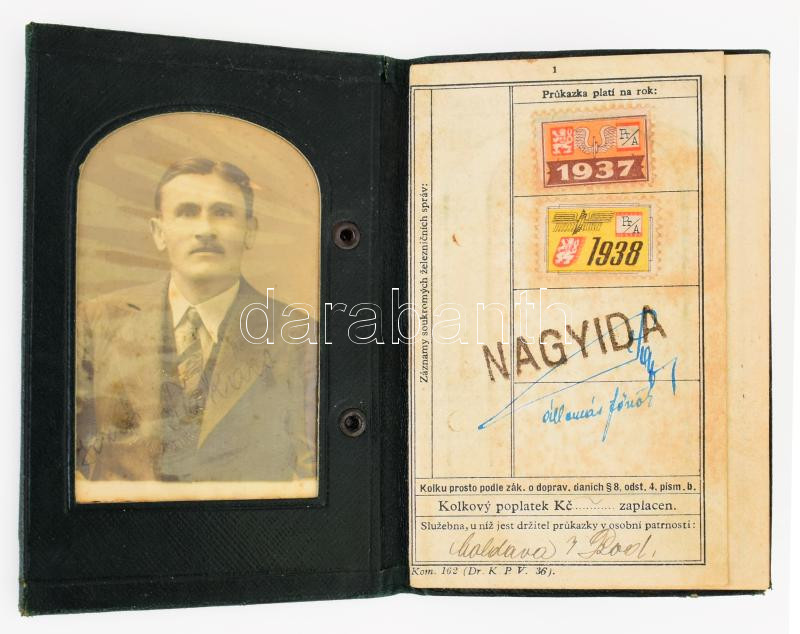1936 Csehszlovák vasúti utazási okmány címeres bőrtokban https://www.darabanth.com/hu/496-Gyorsarveres/496.0/Kulfoldi-filatelia-es-postatortenet/Okmanyok~1000081/1936-Csehszlovak-vasuti-utazasi-okmany-cimeres-bortokban~II3374793