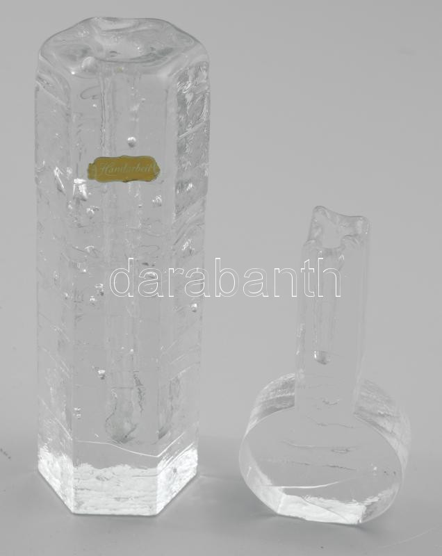 Leírás: 2 darab öntött kristály orchideaváza, címkével jelzett, m: 12-19 cm