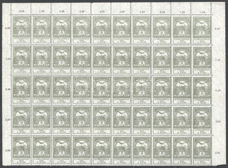 Leírás: 1913 Árvíz 6f gumi nélküli fél ív, típusok listázva