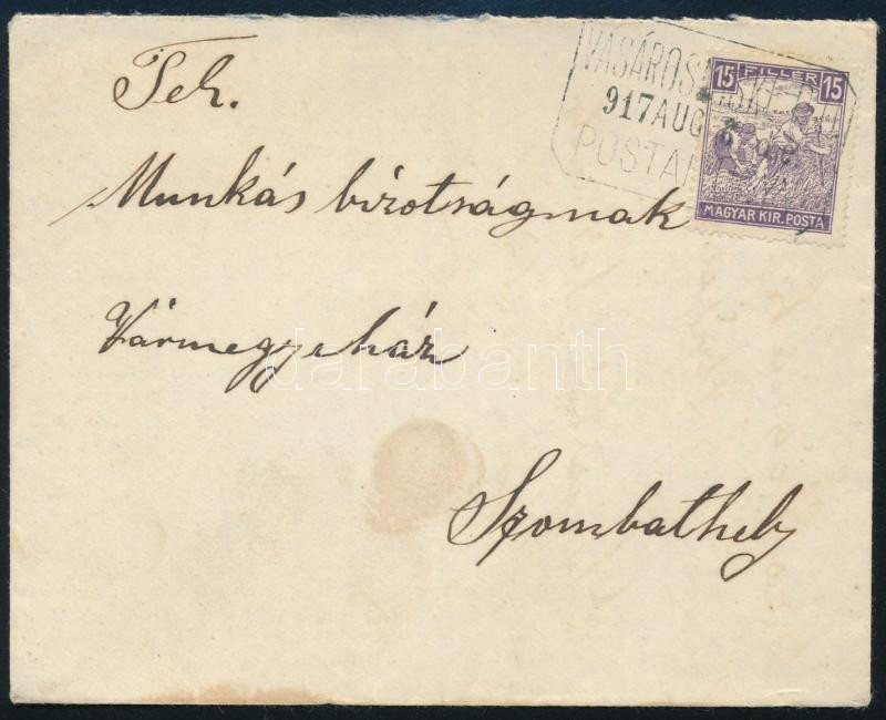 1917 Levél "VÁSÁROSMISKE" postaügynökségi bélyegzéssel https://www.darabanth.com/hu/496-Gyorsarveres/496.0/Magyar-filatelia-es-postatortenet/1900-1919-kozotti-kiadasok~1000036/1917-Level-VASAROSMISKE-postaugynoksegi-belyegzessel~II3003195