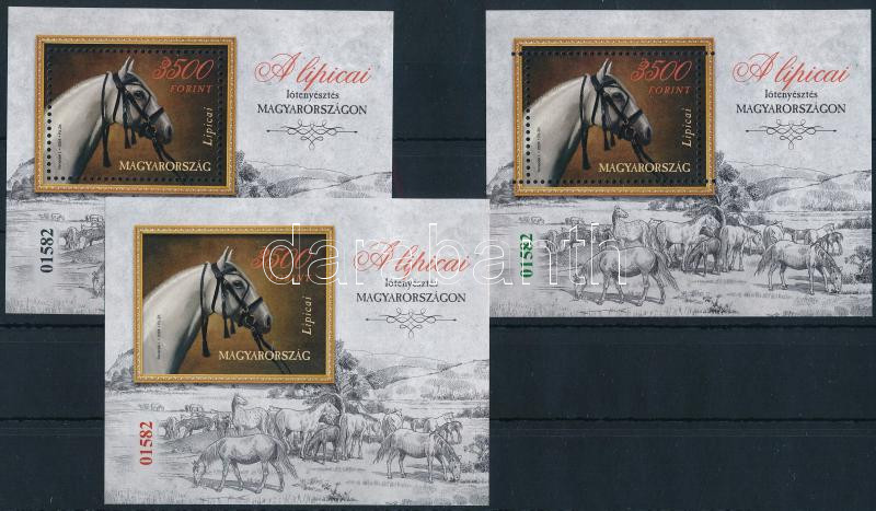Leírás: 2024 A lipicai lótenyésztés Magyarországon fogazott blokk fekete, speciális fogazású blokk zöld és vágott blokk piros azonos sorszámmal
