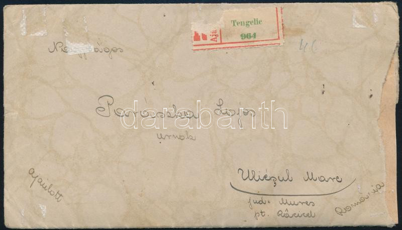 Leírás: 1946 (16. díjszabás) Ajánlott levél 15 db Milliós bélyeggel Romániába küldve