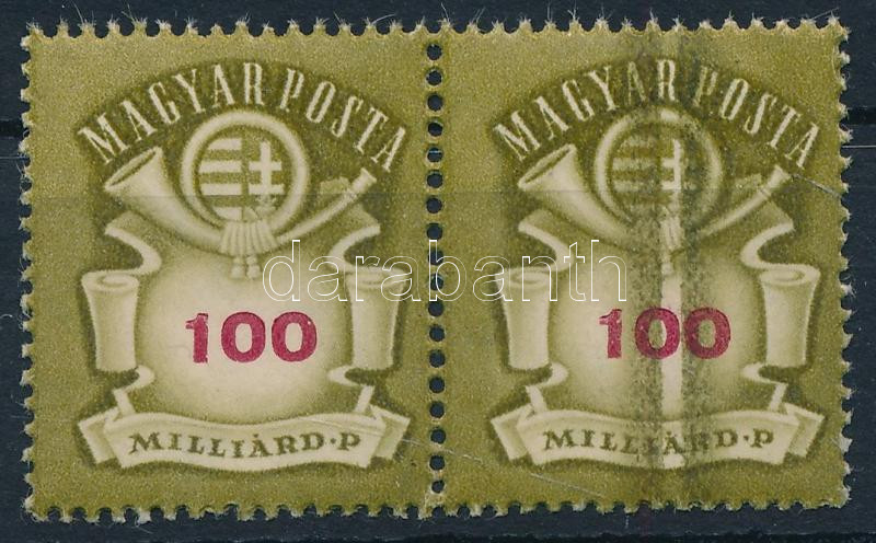 1946 Milliárdos 100 milliárd P pár vastag rákel csíkkal https://www.darabanth.com/hu/496-Gyorsarveres/496.0/Magyar-filatelia-es-postatortenet/A-II-inflacio-idoszaka-1945-1946~1000053/1946-Milliardos-100-milliard-P-par-vastag-rakel-csikkal~II3061942