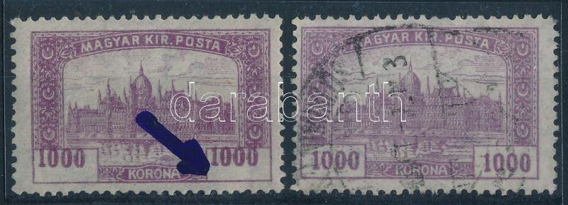 Leírás: 1921 Parlament 1000K látványosan elcsúszott értékszámokkal + támpéldány / Mi 367 with shifted numbers
