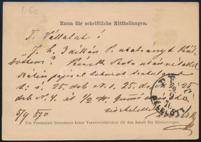 Leírás: 1870 2kr díjjegyes levelezőlap / PS-card "CSANÁD"