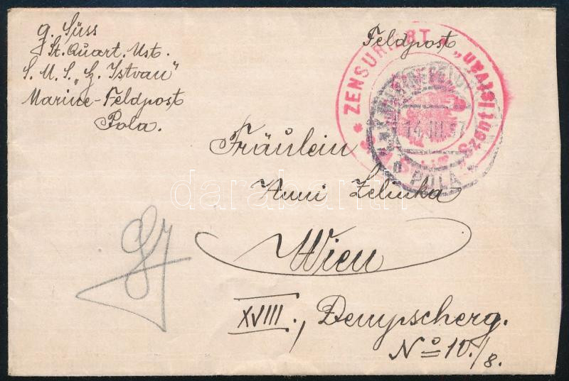 Leírás: 1917 Tábori posta levél "S.M.S. Szent István"