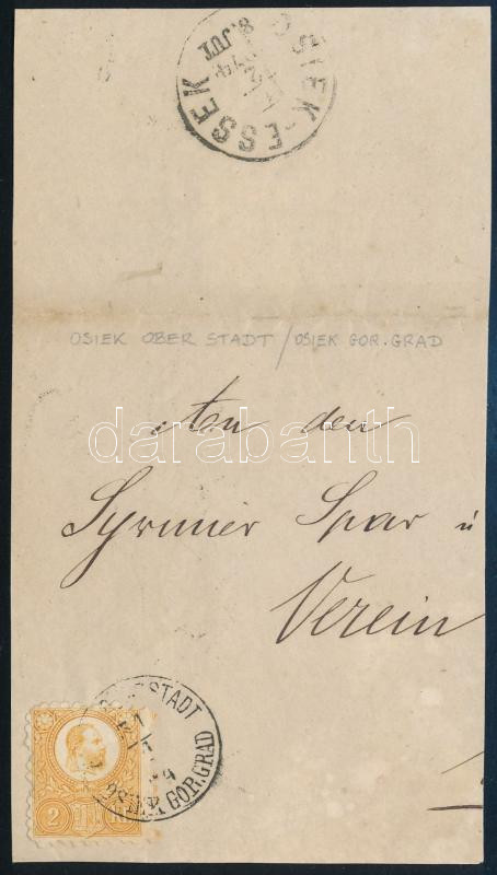 1874 Réznyomat 2kr levél darabon / on cover piece "(ESZEK-OBER)ST... https://www.darabanth.com/hu/496-Gyorsarveres/496.0/Magyar-filatelia-es-postatortenet/Reznyomat~1000030/1874-Reznyomat-2kr-level-darabon-on-cover-piece-ESZEK-OBERSTADT-OSIEK-GORGRAD~II3002301