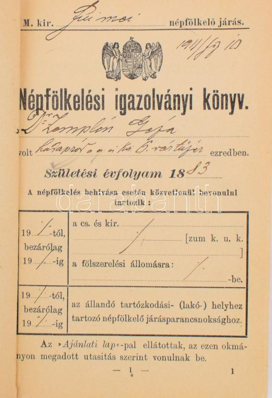 1911 Népfölkelési igazolványi könyv Zemplén Géza hadapród a m. kir. 6.... https://www.darabanth.com/hu/496-Gyorsarveres/496.0/Mutargy-papirregiseg-egyeb/Militaria~500012/1911-Nepfolkelesi-igazolvanyi-konyv-Zemplen-Geza-hadaprod-a-m-kir-6-vartuzer-ezredbeli~II3394760