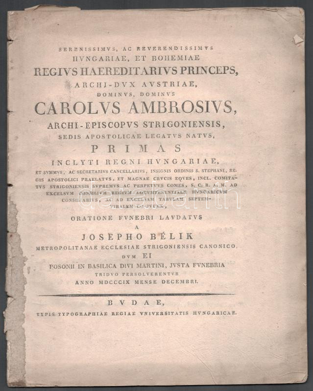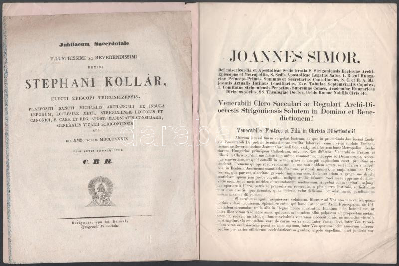 cca 1810-1850 6 db főpapokat dicsőítő beszéd lenyomata: Kollár István (1764?1844) kanonok, püspök, nagyprépost;