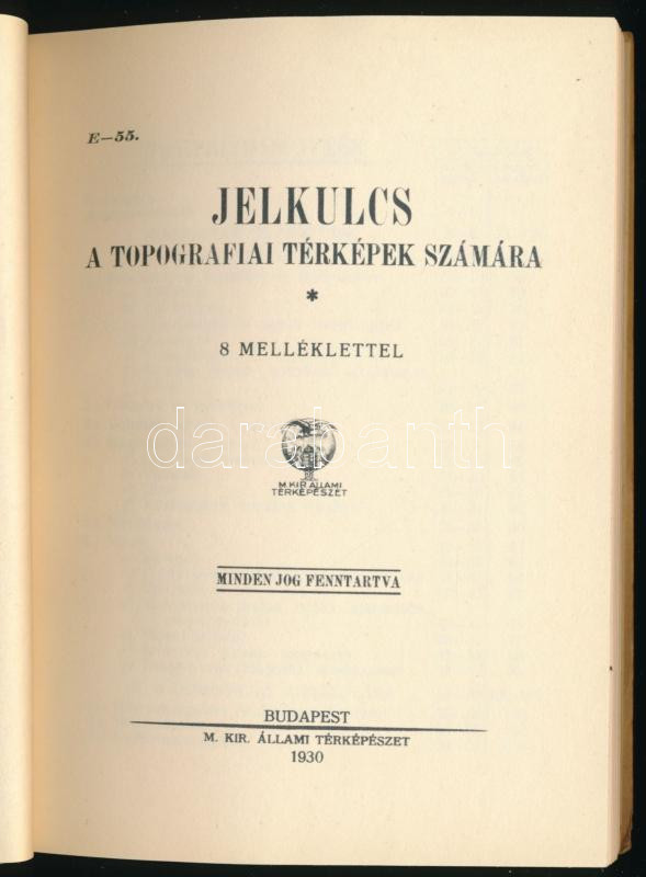 Leírás: Jelkulcs a topográfiai térképek számára. 8 melléklettel. Bp., 1930, M. Kir. Állami Térképészet. Papírkötésben, jó állapotban.