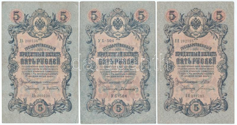 Leírás: Orosz Birodalom 1898(1917) 1R (2x) Szign.:Shipov + 1905(1917) 3R Szign.:Shipov + 1909. 5R Szign.: Shipov + 1909(1917) 5R Szign.:Shipov (2xklf) T:F, szép papír