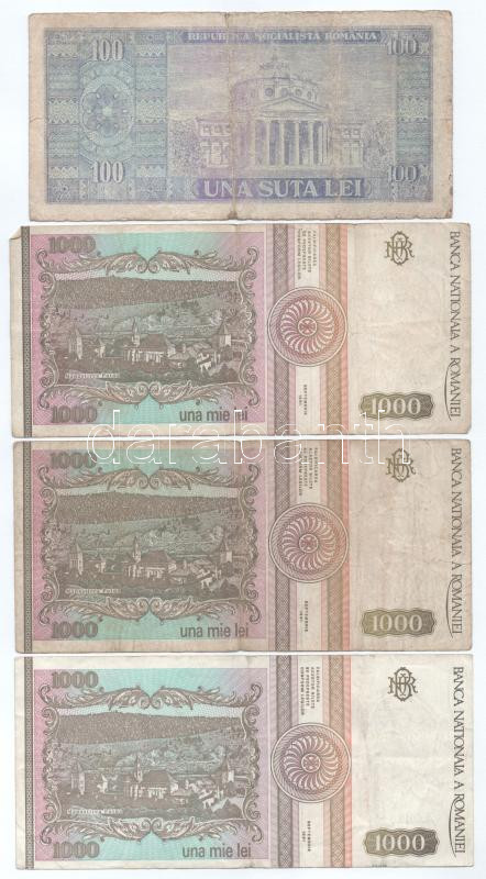 Leírás: Románia 1966. 25L (2x) + 100L + 1991. 500L (2x) + 1000L (3x) T:VG