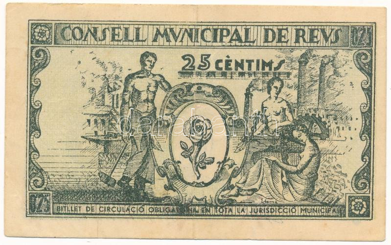 Spanyolország / Polgárháború / Reus 1937. 25c T:F kis folt, egyébként erős papír