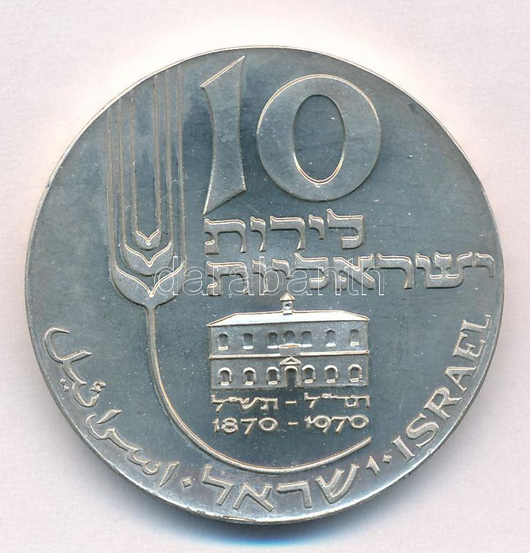 Izrael 1970. 10L Ag "A függetlenség 22. évfordulója / A Mikveh Israel 100. évfordulója" T:UNC,AU Israel 1970. 10 Lirot Ag "22nd Anniversary of Independence / Centennial of Mikveh Israel" C:UNC,AU Krause KM#58