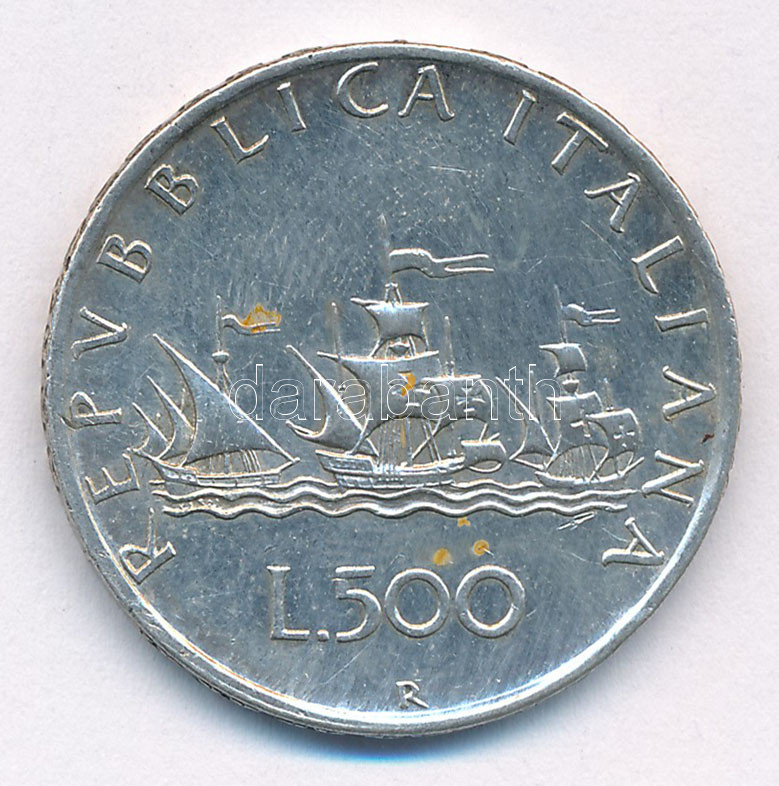 Olaszország 1959R 500L Ag "Kolumbusz hajói" T:2 patina Italy... https://www.darabanth.com/hu/496-Gyorsarveres/496.0/Numizmatika/Kulfoldi-fem-es-ezustpenzek~2500111/Olaszorszag-1959R-500L-Ag-Kolumbusz-hajoi-T2-patina-Italy-1959R-500-Lire-Ag-Columbus-Ships-C~II2693815