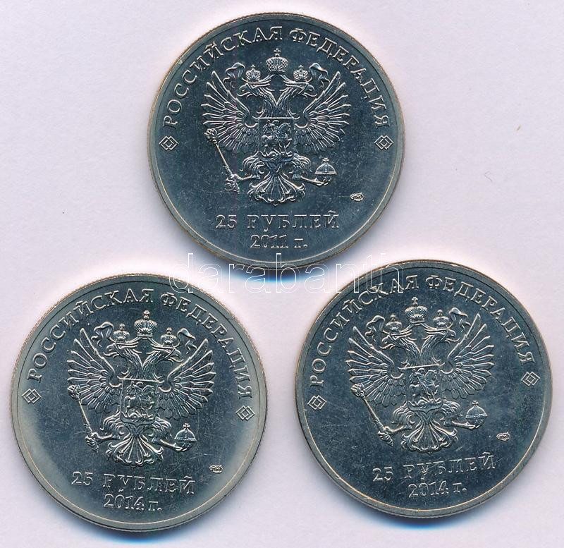 Leírás: Oroszország 2011-2014. 25R Cu-Ni "Téli Olimpia" (3xklf) forgalmi emlékérme kapszulában T:AU