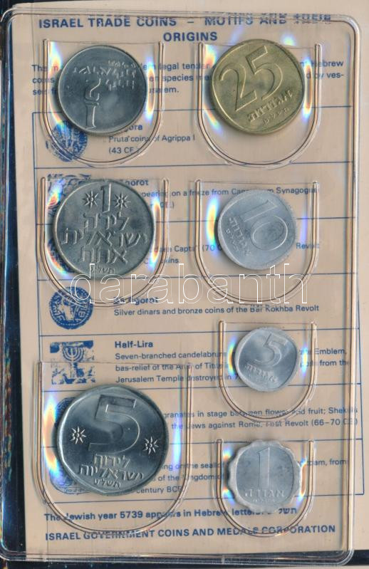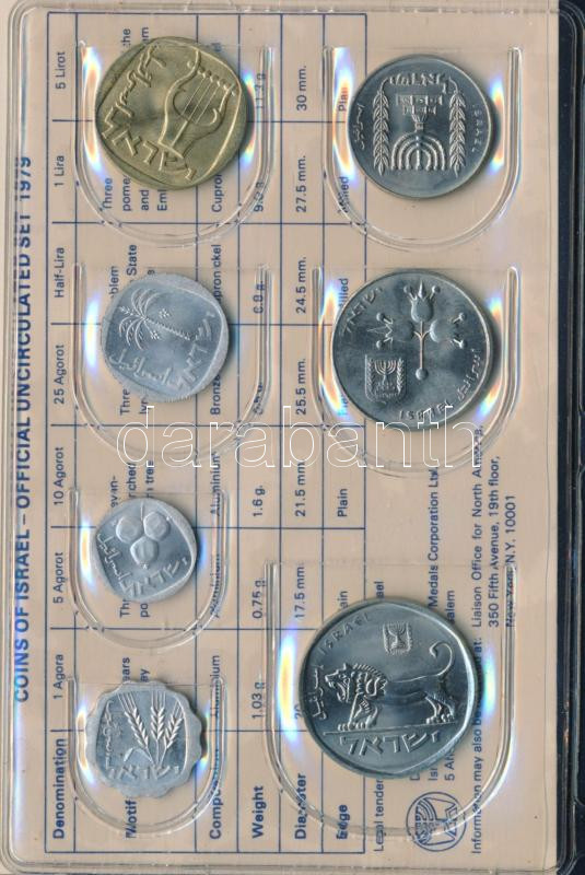 Isr... https://www.darabanth.com/hu/496-Gyorsarveres/496.0/Numizmatika/Kulfoldi-forgalmi-sorok~1500022/Izrael-1979-1a-5L-7xklf-forgalmi-sor-mubor-tokban-TUNC-patina3Cbr-3E-Israel-1979-1-Agora-5-~II3393230