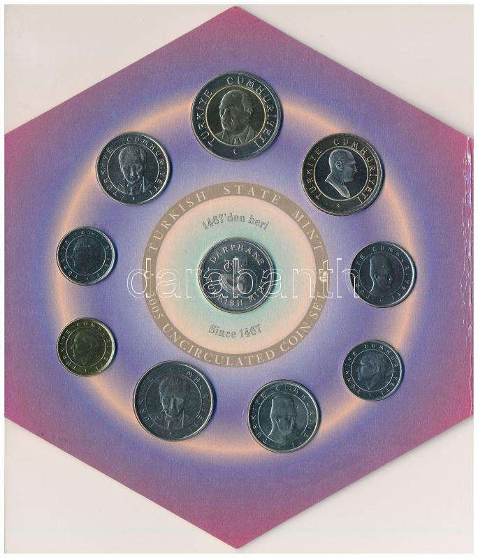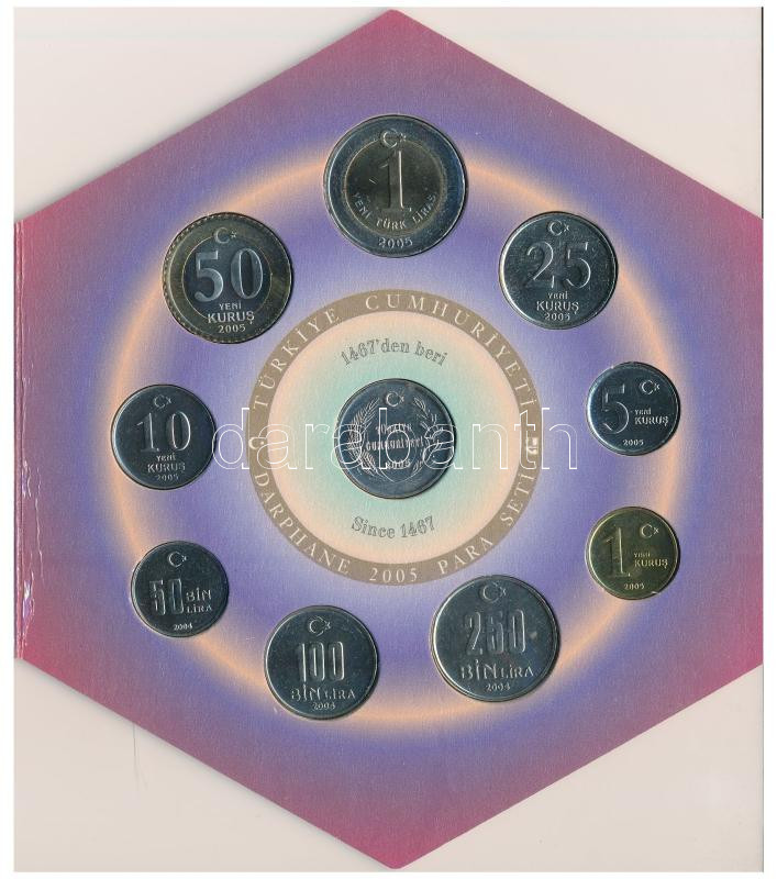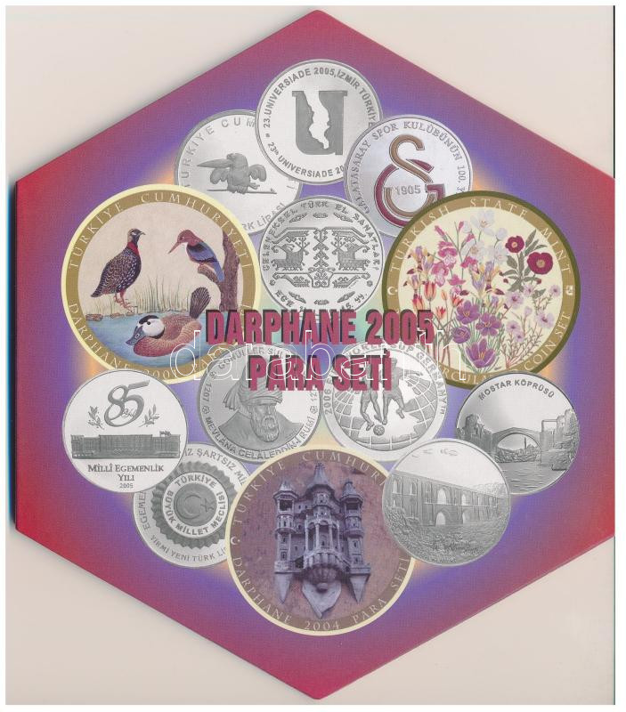 Leírás: Törökország 2005. 1k - 250.000L (9xklf) + Ag verdei zseton (6g/0.500/22mm). Forgalmi sor karton dísztokban T:UNC