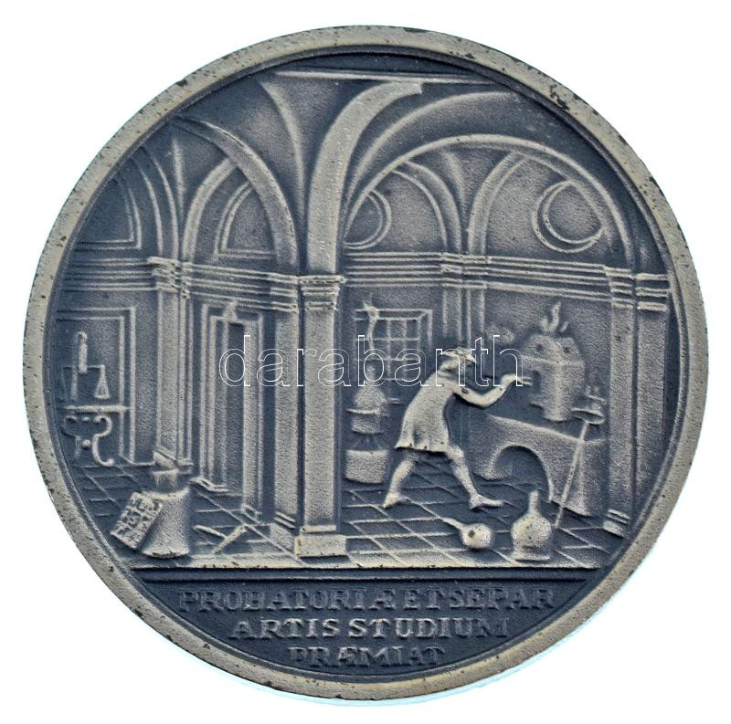 1974. "Vasipari Kutató Intézet - Budapest - 25 éves évforduló" ezüstpatinázott bronz emlékérem, hátoldalán a a selmecbányai tanulmányi érem kémlészeti érmének képével, dÃsztokban (45mm) T:UNC