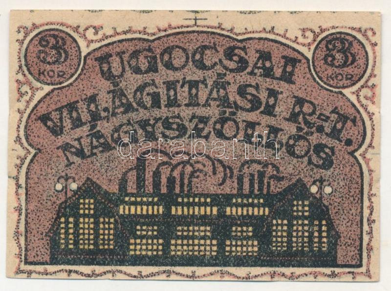 Hungary / Nagyszőllős 1919. 3 Korona "Ugocsa Lighting Company" value ticket C:F fine paper