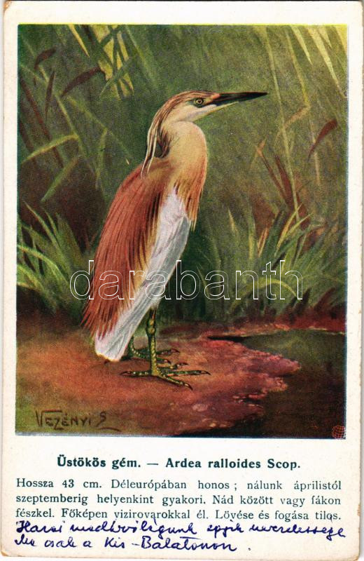 Üstökösgém. A Magyar Földrajzi Intézet r.t. kiadása, Székesfővárosi állatkerti sorozat / Ardea (Ardeola) ralloides Scop. / Squacco heron s: Vezényi (EK)