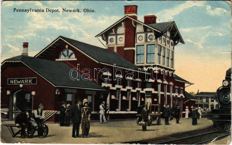 1914 Newark (Ohio), Pennsylvania Depot, railway station, locomotive, t... https://www.darabanth.com/hu/498-Gyorsarveres/498.0/Kepeslapok/Amerikai-Egyesult-Allamok~3000024/1914-Newark-Ohio-Pennsylvania-Depot-railway-station-locomotive-train-crease~II3157408