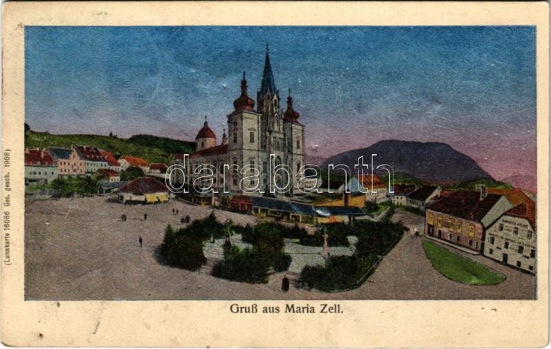 Leírás: Mariazell, Gruss aus Maria Zell / main square, church. Lunakarte 16086. (pinhole)