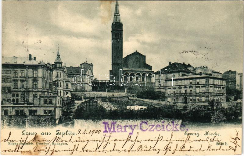 Leírás: 1900 Teplice, Teplitz-Schönau; Evang. Kirche / Lutheran church (fl)