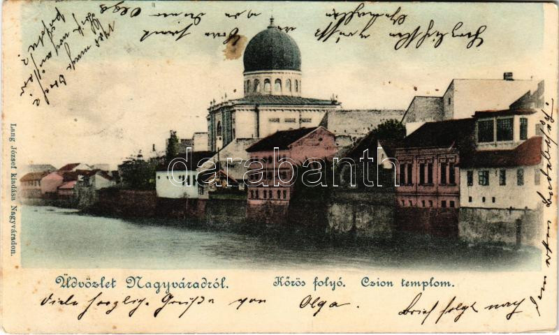 1901 Nagyvárad, Oradea; Körös folyó, Czion (Cion) templom, zsinagóga. ... https://www.darabanth.com/hu/498-Gyorsarveres/498.0/Kepeslapok/Erdely~3000006/1901-Nagyvarad-Oradea-Koros-folyo-Czion-Cion-templom-zsinagoga-Lang-Jozsef-kiadasa-C~II3395153