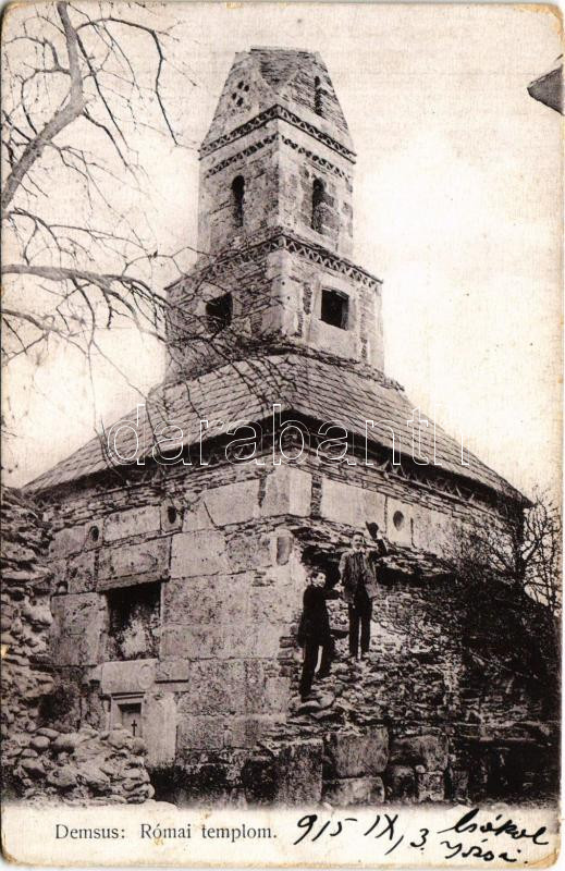 1915 Demsus, Densus (Hunyad); Középkori ortodox templom. Kendoff A. és fia kiadása (Hátszeg) / Medieval Orthodox stone church (kopott sarkak / worn corners)