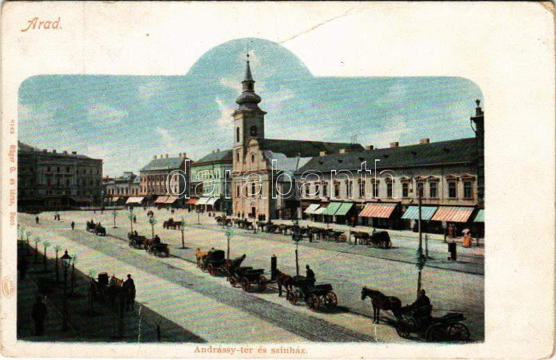 Arad, Andrássy tér és színház, üzletek. Rüger G. és társa (Bécs) / squ... https://www.darabanth.com/hu/498-Gyorsarveres/498.0/Kepeslapok/Erdely~3000006/Arad-Andrassy-ter-es-szinhaz-uzletek-Ruger-G-es-tarsa-Becs-square-theatre-shops-~II3400120