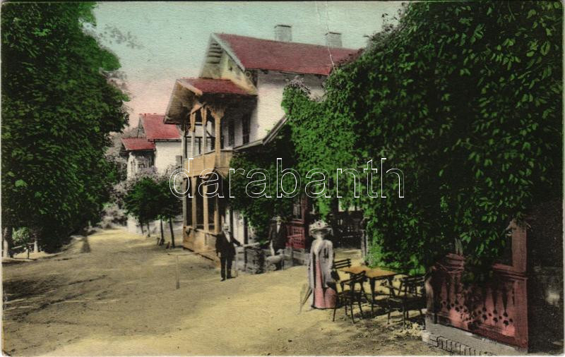 Leírás: 1914 Kassa, Kosice; Bankó fürdő szálloda és vendéglő. Özv. Kalafony Józsefné kiadása / spa hotel and restaurant in Bankov (fa)