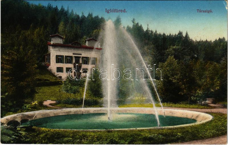Leírás: Iglófüred, Bad Zipser Neudorf, Spisská Nová Ves Kupele, Novovesské Kúpele; Társalgó. Ferencz D. kiadása / spa, villa (EK)
