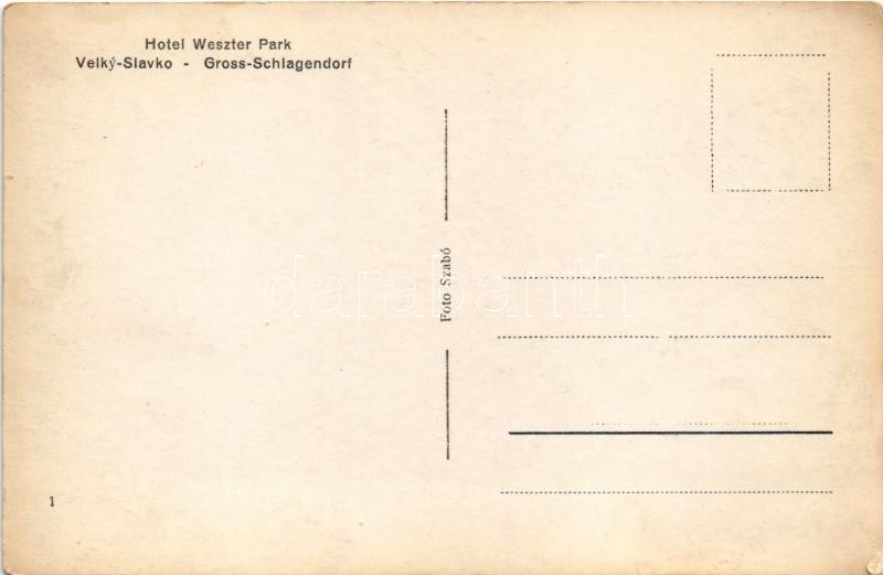 Nagyszalók, Grossschlagendorf, Velky Slavkov (Tátra); Hotel Weszter Pa... https://www.darabanth.com/hu/498-Gyorsarveres/498.0/Kepeslapok/Felvidek~3000007/Nagyszalok-Grossschlagendorf-Velky-Slavkov-Tatra-Hotel-Weszter-Park-Weszter-szalloda-parkj~II3401168