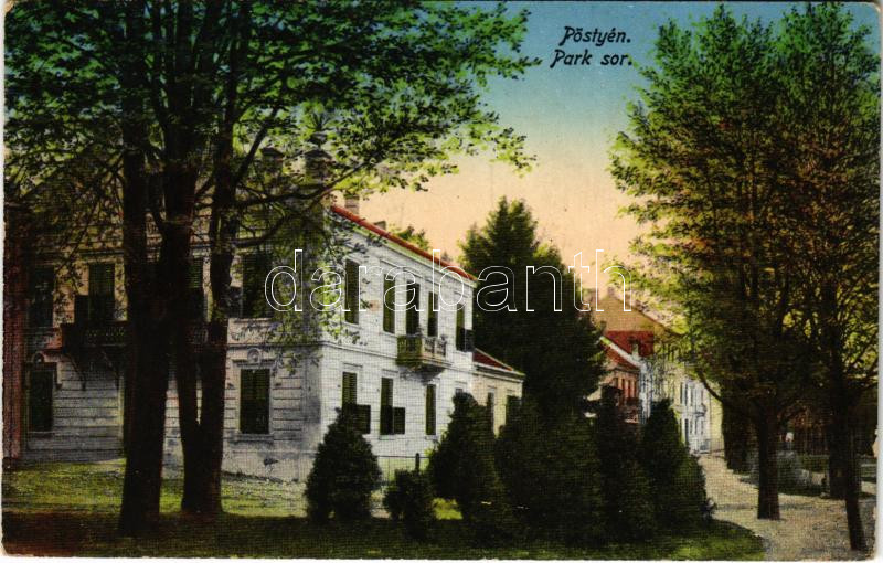 Pöstyén, Piestany; park sor / street view https://www.darabanth.com/hu/498-Gyorsarveres/498.0/Kepeslapok/Felvidek~3000007/Postyen-Piestany-park-sor-street-view~II3018907