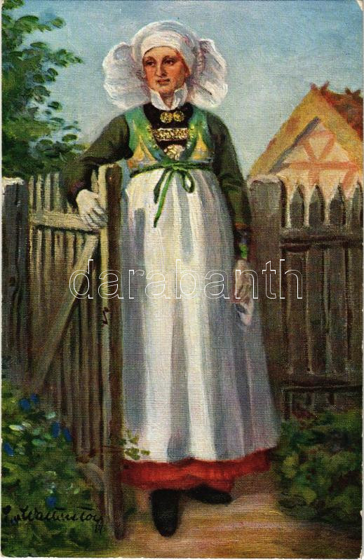 Leírás: Torna härad, Skane. Nordiska museet. Granbergs Konstindustri-Aktiebolags Förlag No. 6610. / Swedish folklore, national costume, artist signed
