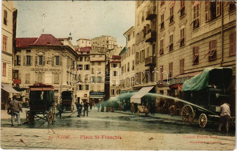 1910 Nice, Nizza; Place St. Francois / square, café, shops, street cle... https://www.darabanth.com/hu/498-Gyorsarveres/498.0/Kepeslapok/Franciaorszag~3000059/1910-Nice-Nizza-Place-St-Francois-square-cafe-shops-street-cleaning-EK~II3152334